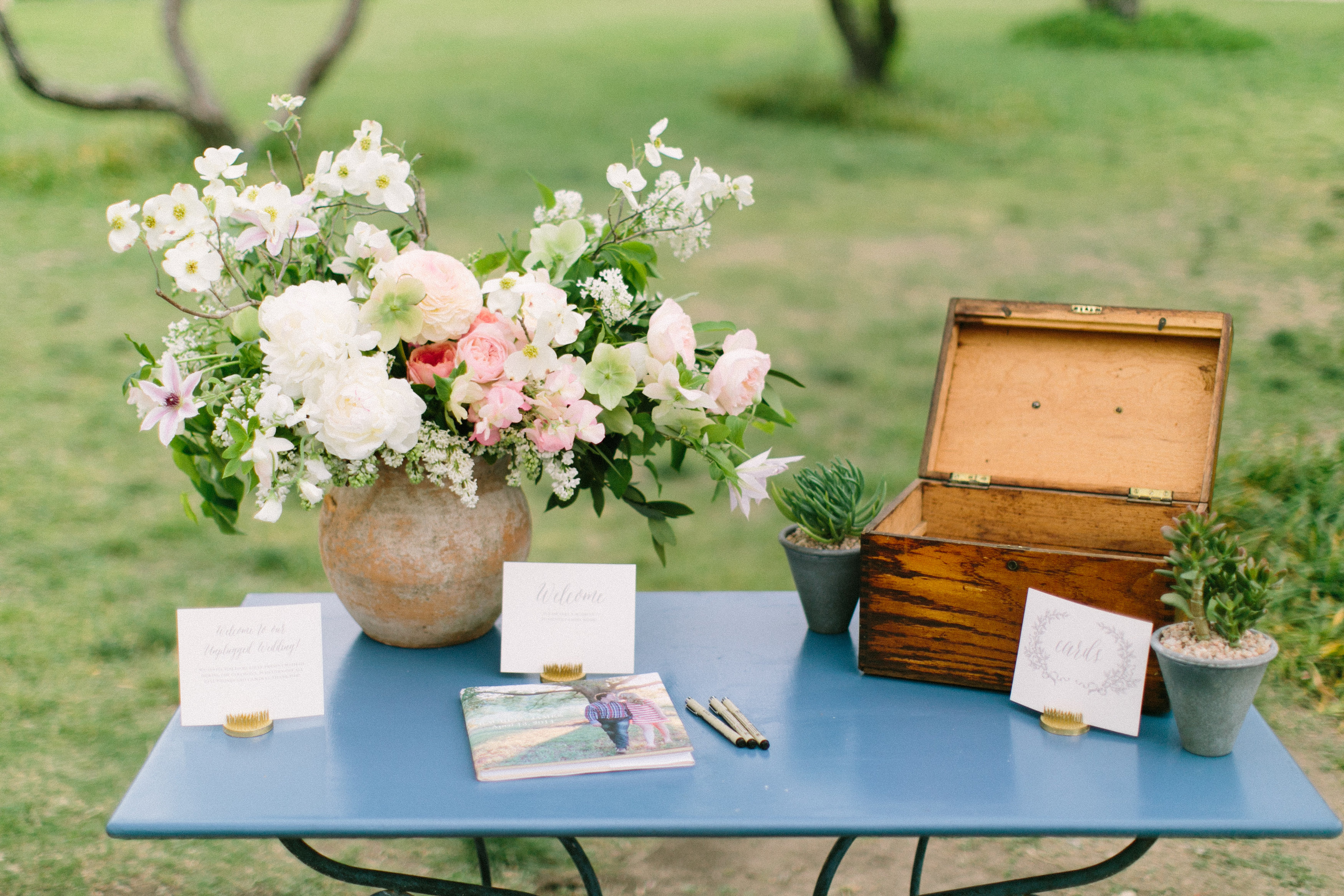 Through yet another connection, we were introduced to The Nouveau Romantics. We cannot say enough good things about working with Liz and Hannah – they made our dreams become a reality. They helped us craft the ceremony and reception that we wanted, and we loved that they are a one-stop shop, a place where we could work together on everything paper, floral, and event-related, creating a really streamlined effect for our wedding as a whole. From succulent-filled bouquets and margaritas during cocktail hour to farm-style tables and family-style food service, Liz and Hannah helped us make selections that felt innately us, choices that reflected our relationship and the party we wanted to host for the people we love most in the world.